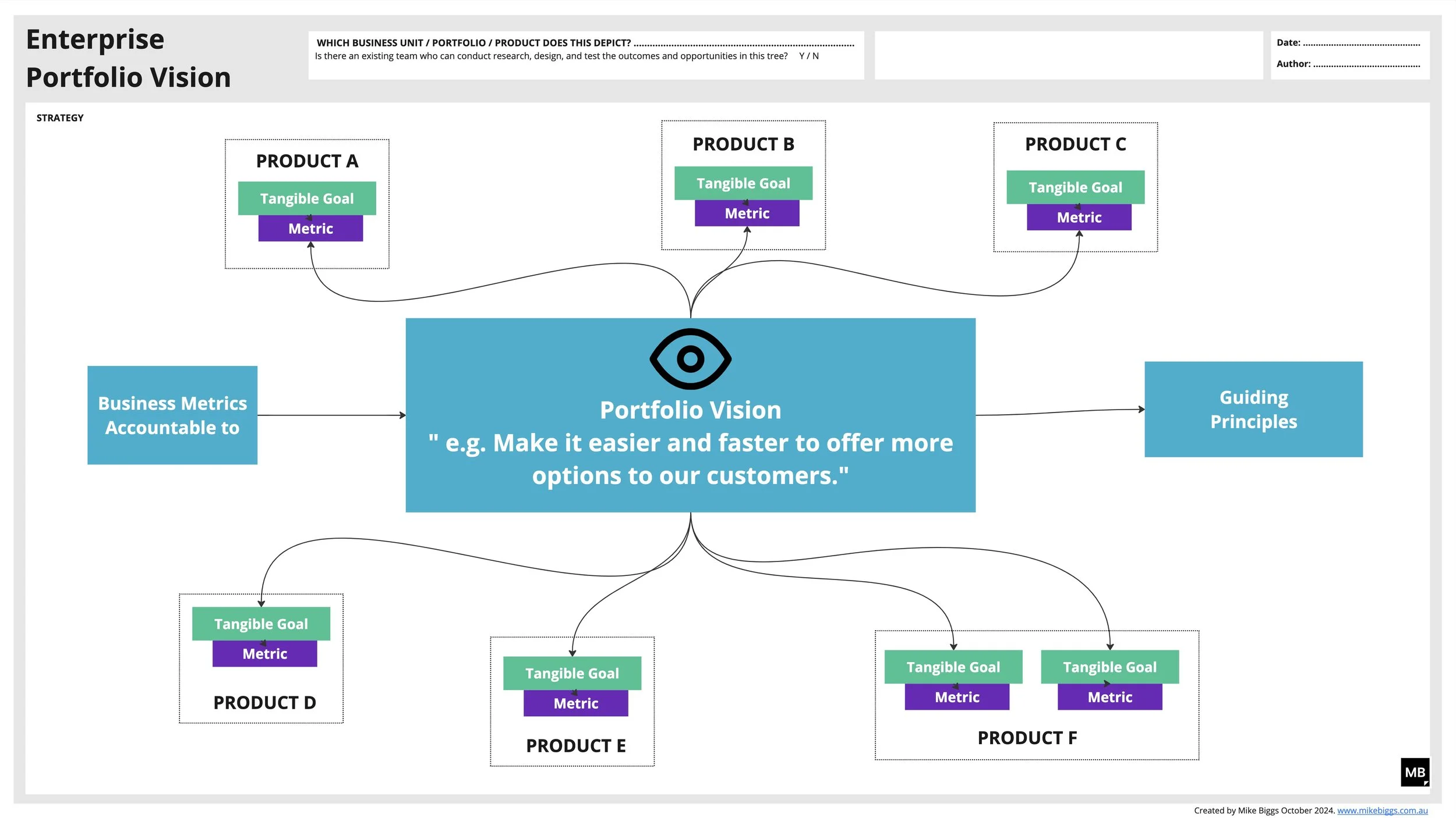 The Enterprise Portfolio Vision expresses the overall value proposition of the portfolio including how it will be realised in specific products.